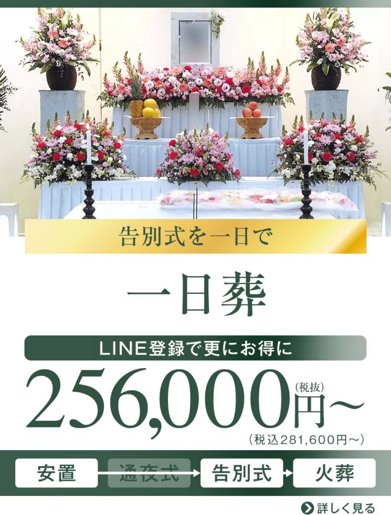 (通夜を行わず1日で葬儀・告別式・火葬を行う形式)